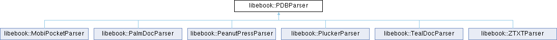 Implemented in libebook::MobiPocketParser, libebook::PalmDocParser, libebook::PeanutPressParser, libebook::PluckerParser, libebook::TealDocParser, and libebook::ZTXTParser.