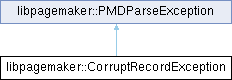 | Public Member Functions inherited from libpagemaker::PMDParseException | |