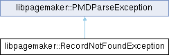 | Public Member Functions inherited from libpagemaker::PMDParseException | |