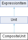 Composite units are defined as a composition of units. The units, with prefixes and exponents, can either be added one by one with add() or parsed from an expression (ex. "cm^3/g) with setBaseExpression().