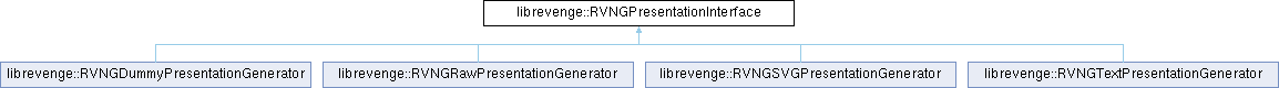 Implemented in librevenge::RVNGDummyPresentationGenerator, librevenge::RVNGRawPresentationGenerator, librevenge::RVNGSVGPresentationGenerator, and librevenge::RVNGTextPresentationGenerator.