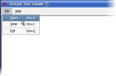 To open and view a file in the Simple Text Viewer, select the 'Open...' option in the 'File' menu. The application will then provide you with a file dialog that you can use to search for any existing file.