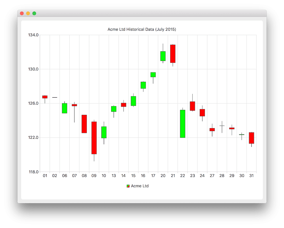 QCandlestickSeries *acmeSeries = new QCandlestickSeries(); acmeSeries->setName("Acme Ltd"); acmeSeries->setIncreasingColor(QColor(Qt::green)); acmeSeries->setDecreasingColor(QColor(Qt::red));