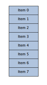 If five items were inserted in succession at index 0, the effect would be this:
