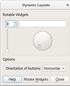 Dynamic Layouts implements dynamically placed widgets within running applications. The widget placement depends on whether Horizontal or Vertical is chosen.